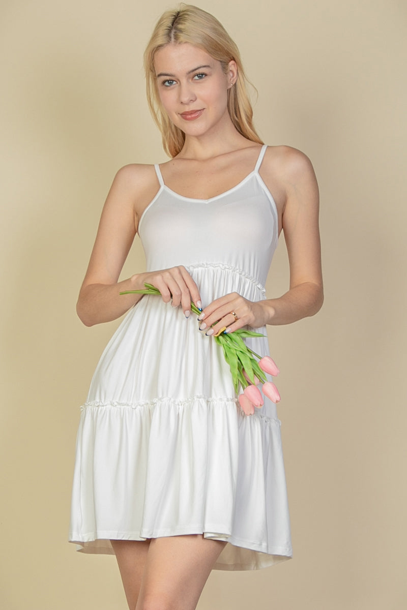 tiered swing dress, cami dress, casual summer dress, flowy empire waist dress, women's tiered midi dress, lightweight and stretchy dress